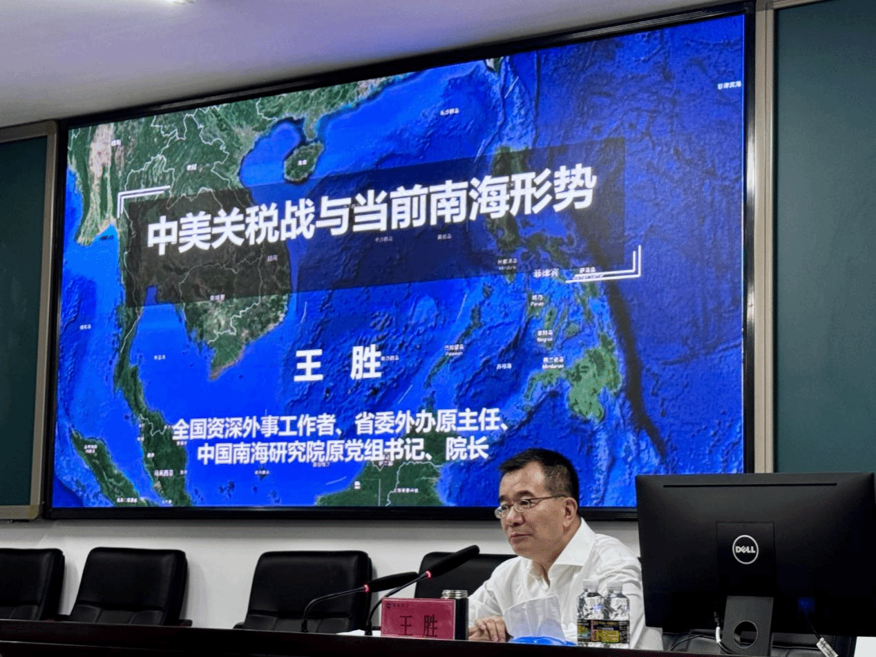 王胜教授紧密围绕当下特朗普2.0时代中美关税战的大背景以及海洋强国建设的重要性进行了讲述,按照“认识问题、分析问题、解决问题和取得实效”的逻辑顺序,构建了课程框架,将理论知识和视频、图片相结合,贯通中美关税战的发展走向及南海历史和现实,兼具科普性和理论性,图文并茂,情景交融。